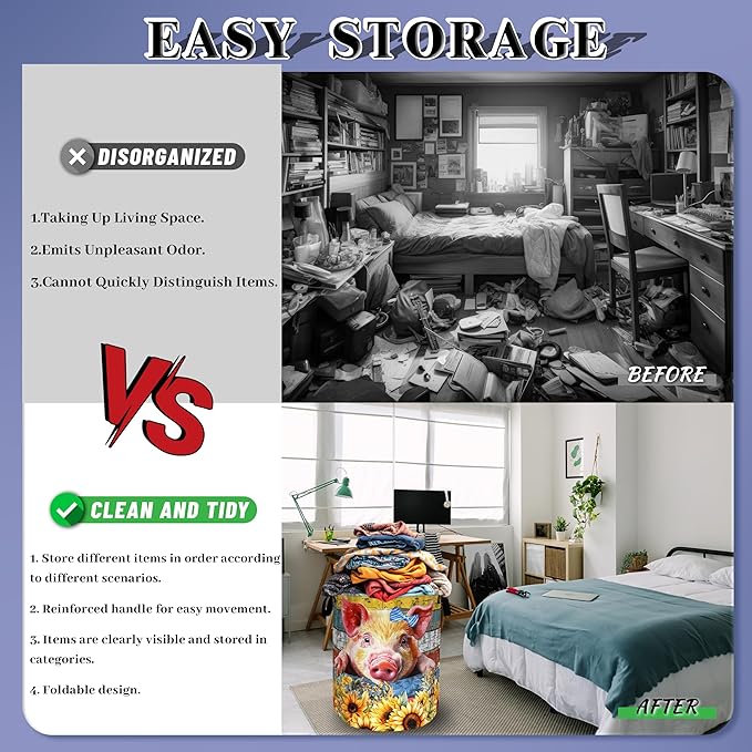 - Multi-Purpose: Our laundry hamper is a multi-functional basket, besides storing clothes, it can also be used to organize toys, clothes, office sundries and household sundries, it is very versatile, and can be placed in bathrooms, bedrooms, laundry rooms, children's rooms, dormitories, kitchens, offices and other places. Make your living environment beautiful and neat