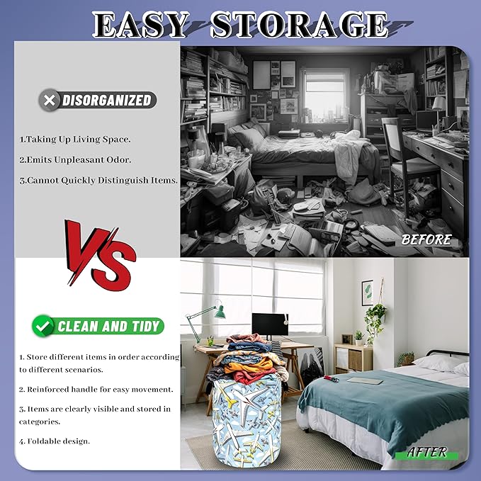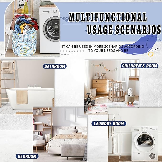 - Multi-Purpose: Our laundry hamper is a multi-functional basket, besides storing clothes, it can also be used to organize toys, clothes, office sundries and household sundries, it is very versatile, and can be placed in bathrooms, bedrooms, laundry rooms, children's rooms, dormitories, kitchens, offices and other places. Make your living environment beautiful and neat