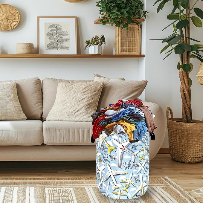 Cartoon Plane Laundry Basket Foldable Funny Laundry Hamper With Handle Oxford Cloth Portable Clothes Storage Organizer Basket 18.9"x16.5" Laundy Bag For Laundry Room/Bedroom/Bathrooms