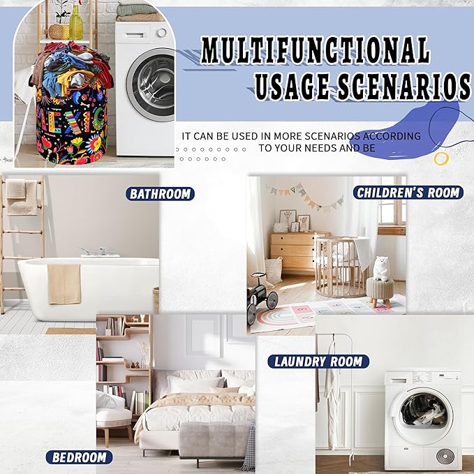 - Multi-Purpose: Our laundry hamper is a multi-functional basket, besides storing clothes, it can also be used to organize toys, clothes, office sundries and household sundries, it is very versatile, and can be placed in bathrooms, bedrooms, laundry rooms, children's rooms, dormitories, kitchens, offices and other places. Make your living environment beautiful and neat