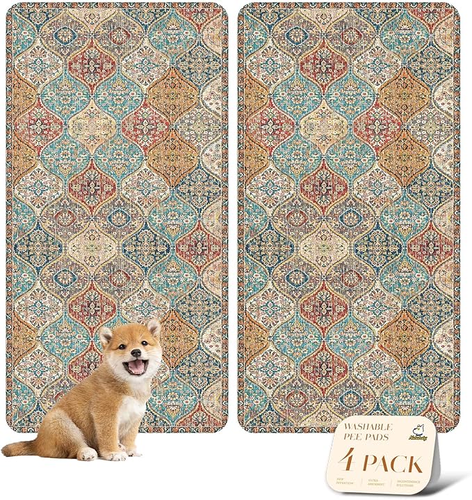 nunubaby 4PACK Washable Pee Pads for Dogs, Stylish, Non-Slip and Leak-Proof Pee Pads. Reusable Potty Pads for Dogs for Crates and Floors.(Cream/Multi, 24" x48")