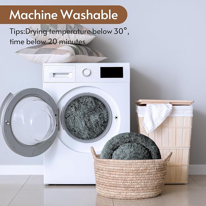 - Premium Material: The donut pet bed is featuring a plush faux fur exterior with polyester fiber fill interior, this cozy canine nest combines tactile comfort with structured cushioning