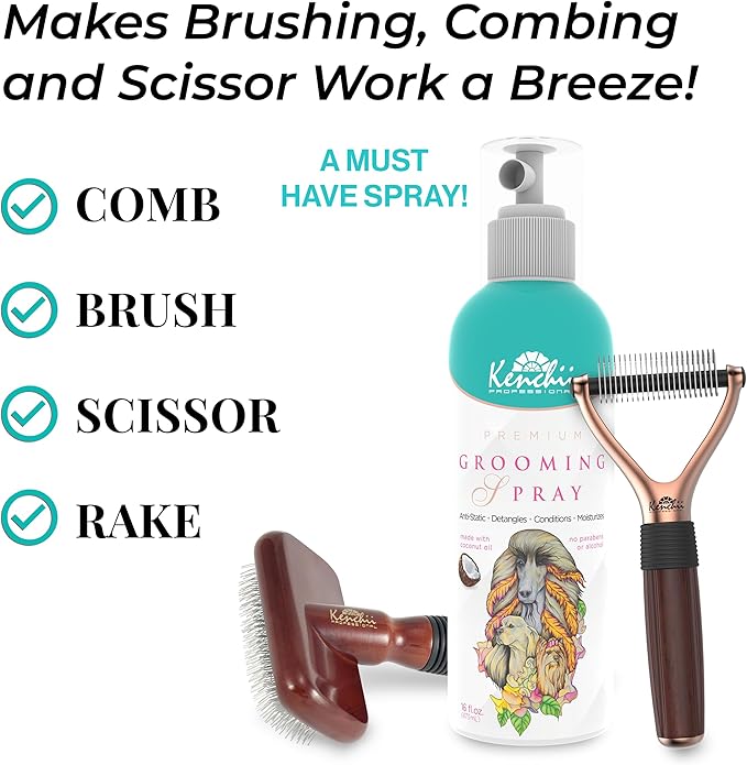 Kenchii Premium Pet Grooming Spray for Dogs and Cats | All-Natural Scented Moisturizing Pet Detangler Spray | Pet Conditioner Coat Shine Spray