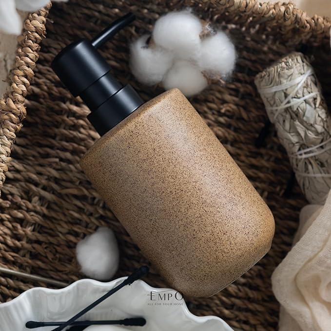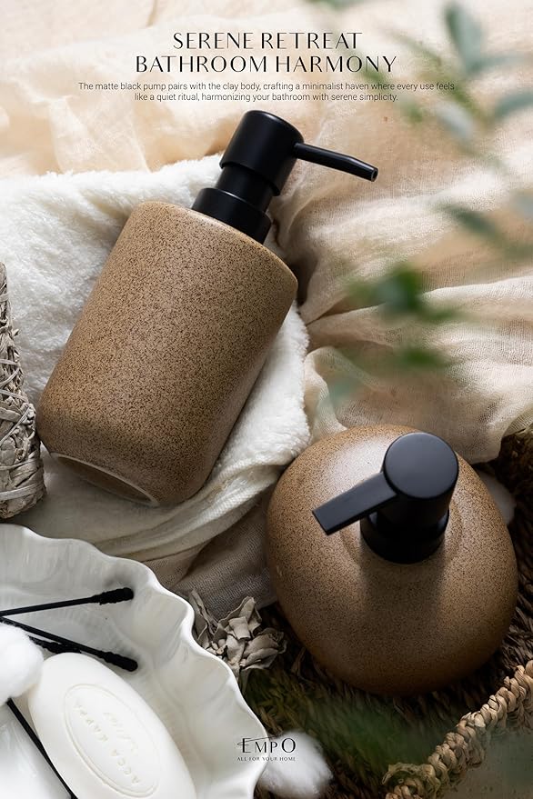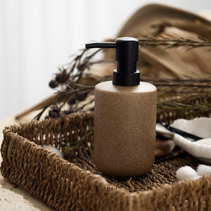 - 【SLEEK BLACK PUMP】Contrasting matte black pump adds a modern touch to the rustic ceramic base