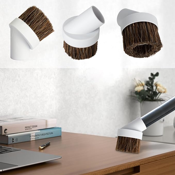 - Horse hair Dust Brushes Attachment :This attachement brushes opening is 1.25" inside diameter.Fits standard vacuum connections at 1.25" (32mm) friction fit. Fits all vacuum cleaners accepting 1 1/4" diameter tools.