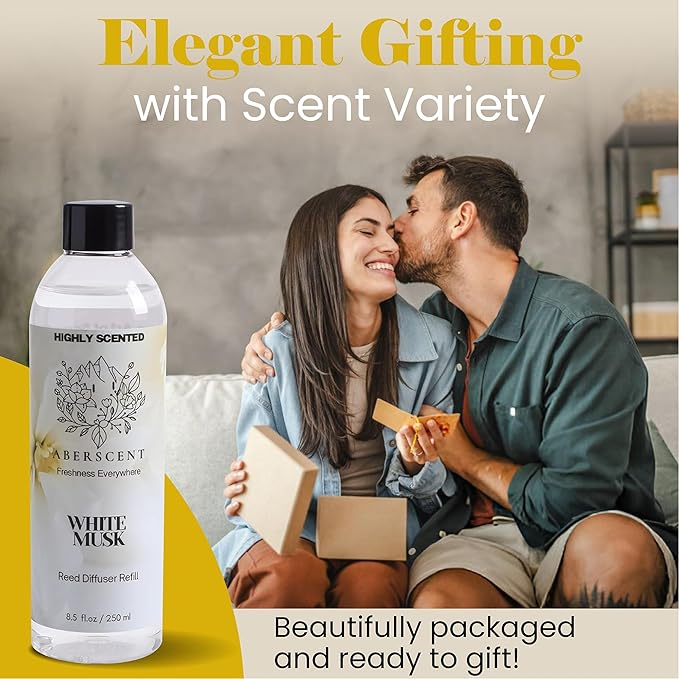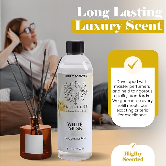 White Musk Aberscent Premium Reed Diffuser Oil Refill (8.5 Fl Oz/250ml) – Long-Lasting Fragrance Oil for Home, Office & Spa – Relaxing Scent, Luxury Hotel-Style Aroma