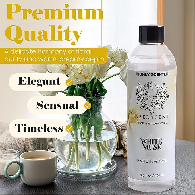 - LONG-LASTING LUXURY SCENT - Experience our refined White Musk fragrance that delivers weeks of consistent, inviting aroma. The 8.5 oz (250ml) premium oil formula ensures lasting freshness for any living space.