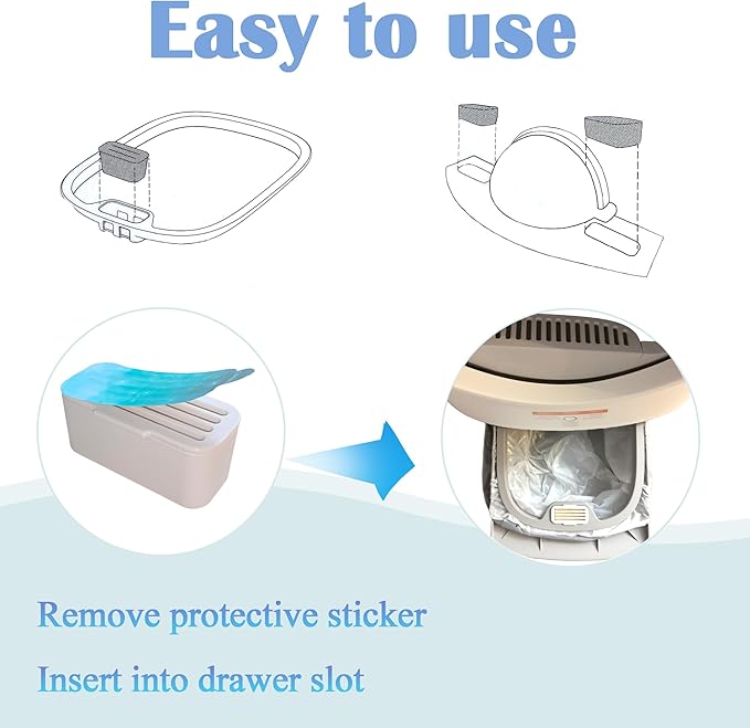 - EASY TO USE: Simply lift the sticker on top of the deodorizer box and place it in the corresponding area of the automatic litter box, allowing your cat to enjoy a healthy, fresh space