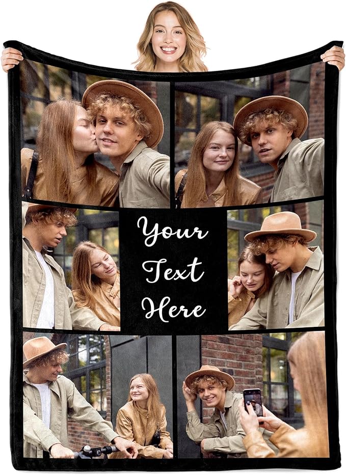 - Custom Blanket with Picture: Customize this high-quality blanket with any picture to create a one-of-a-kind gift. Whether it’s a couple’s photo, a family portrait, or a special moment with a loved one, this blanket makes a touching gift for a girlfriend, boyfriend, mom, or dad.