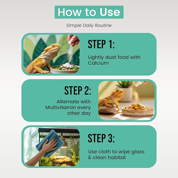 Reptile Calcium with D3 3.3 oz. Herptivite multivitamin 3.3 oz. for Reptiles and Amphibians, with Microfiber Cleaning Cloth (Herptivite multivitamin for Reptiles, Ultrafine Calcium Powder with D3)