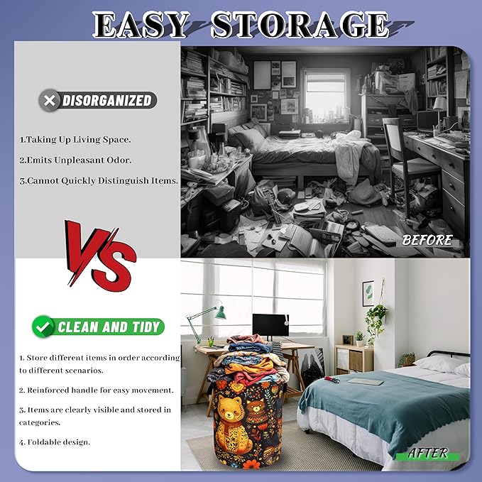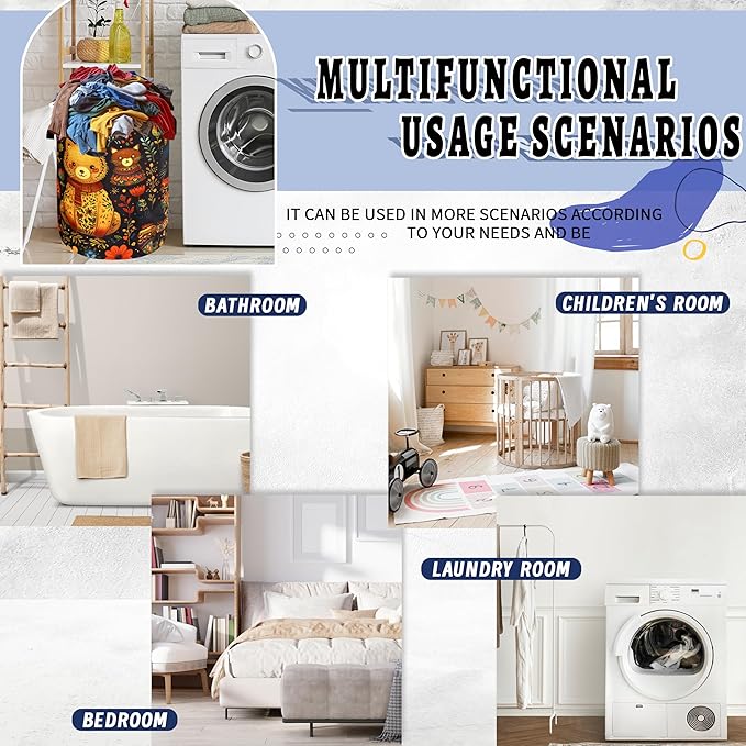 - Multi-Purpose: Our laundry hamper is a multi-functional basket, besides storing clothes, it can also be used to organize toys, clothes, office sundries and household sundries, it is very versatile, and can be placed in bathrooms, bedrooms, laundry rooms, children's rooms, dormitories, kitchens, offices and other places. Make your living environment beautiful and neat