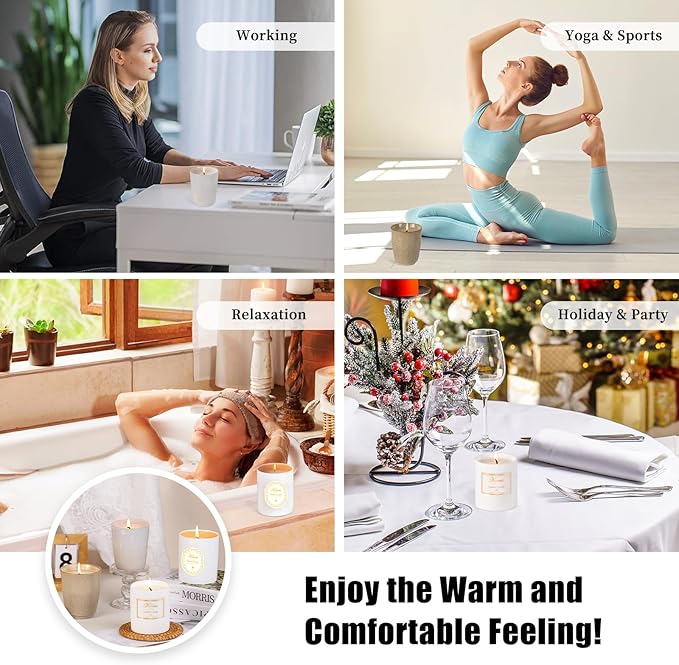- 【Thoughtful Care】Before lighting your bathroom candle for a blissful moment, place it on a heat-resistant plate or coaster to protect wooden surfaces from heat damage. If you have any questions about our products or need post-purchase support, feel free to reach out—we’re here to provide satisfying solutions!
