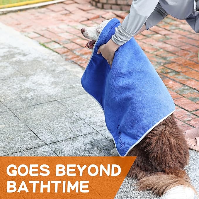 - Too Nice for the Dog:When your dog always rolls in puddles or mud, or likes to roll on wet grass. To reduce the dust and debris it brings in, you can wipe this thick microfiber towel clean.Ultra fine fiber towels can absorb various stains from grass to mud, and they are also great to use when taking a shower