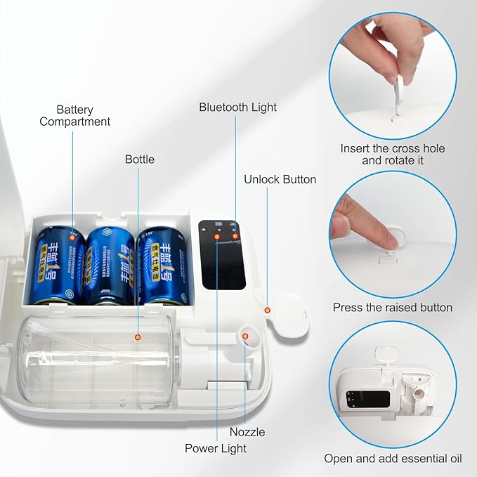 - ✅Bluetooth App Control for Effortless Operation: Easily control your essential oil diffuser with Bluetooth app connectivity. Adjust the fragrance intensity, set timers, and personalize your aromatherapy experience from your smartphone. Perfect for creating a customized scent environment in large spaces or commercial areas, providing long-lasting, enjoyable aromas wherever you need them.