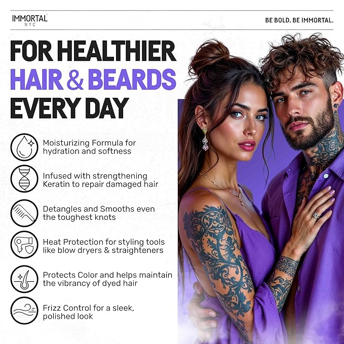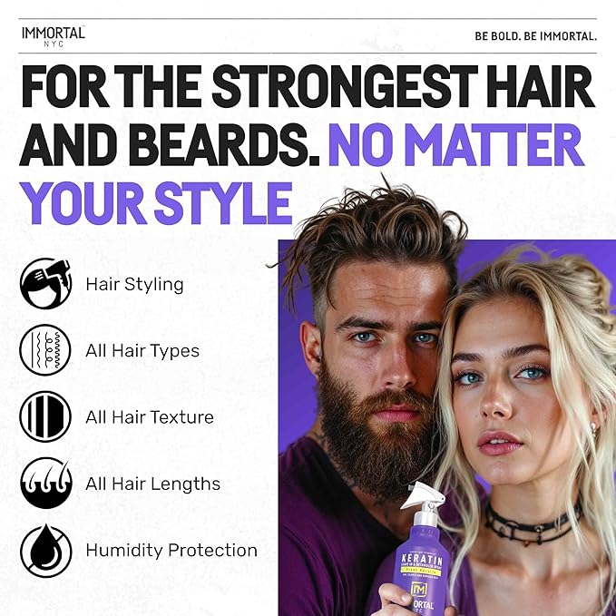 - 2-IN-1 KERATIN LEAVE-IN SPRAY FOR HAIR & BEARD. Instantly softens and detangles coarse hair or beards. Plant keratin smooths knots and adds shine without residue. Ideal for curly, thick, or color-treated textures.
