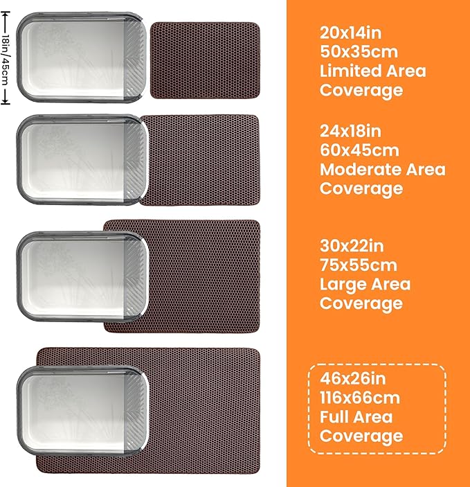 Jumbo Cat Litter Mat, 46x26 Inches Double Layer Honeycomb Litter Trapping Mat, Non Slip Waterproof Urine Proof Extra Large Cat Litter Box Mat, Kitten Supplies and Essentials, XXL, Brown