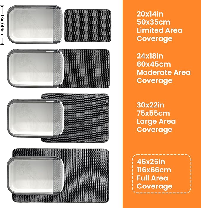 - The Ultimate XXL Litter Mat: Covering a generous 46x26 inches, this giant cat mat for litter box captures every stray piece of litter from cat’s paws and the floor, keeping home spotless. No more daily sweeping, no more lingering odors — just a cleaner, fresher home and more free time for you!