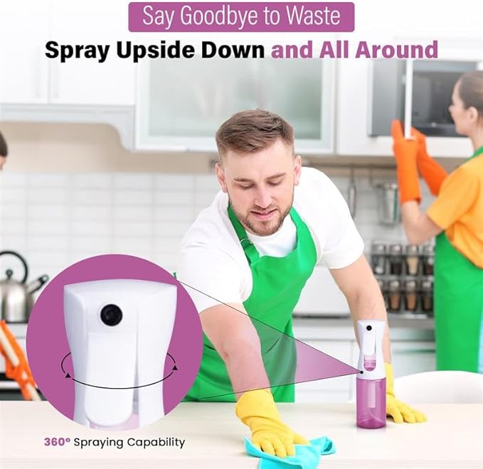 - 360° Fine Mist Sprayer: Easily reach every angle with our continuous spray bottle. Just a gentle squeeze releases a smooth, long-lasting mist—perfect for evenly coating hair, plants, or surfaces.