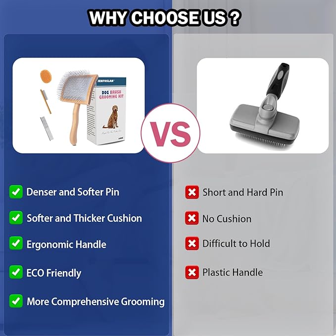 - HANDMADE IN GERMANY: The JENFOSLAN Slicker Brush is meticulously handmade from premium German beechwood, built to last for years. Each piece is quality-checked before shipping to ensure perfection. We truly hope our dog grooming brush kit brings joy and happiness to you and your furry friend!