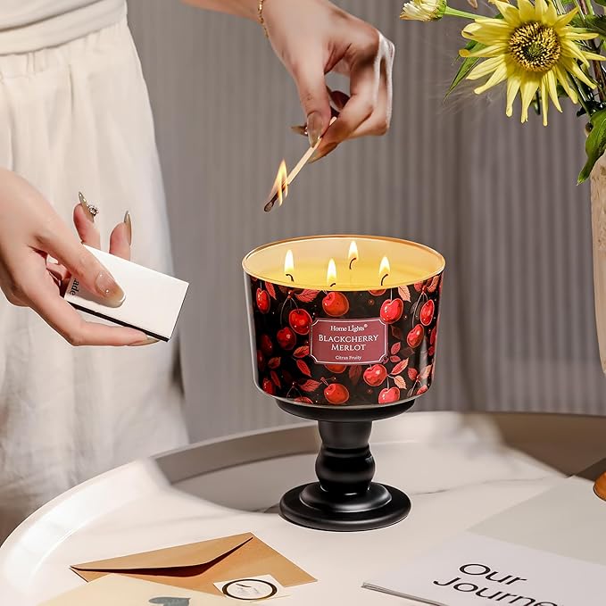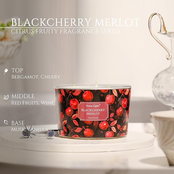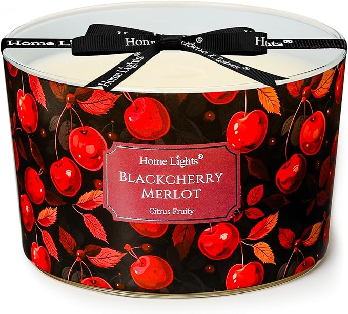 HomeLights Soy Wax Candles for Home Scented, 4-Wick Candles in Blackcherry Merlot Scented, Aromatherapy Candles Gift for Parties, Relaxing, Eclectic Mixed Styles, 18oz
