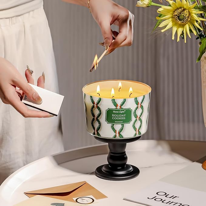 HomeLights 4-Wick Candles for Home Scented - 18oz Soy Wax Blend Candle Long-Lasting Fragrance, Rustic Modern Home Decor and Housewarming Gifts, Holiday Cookies