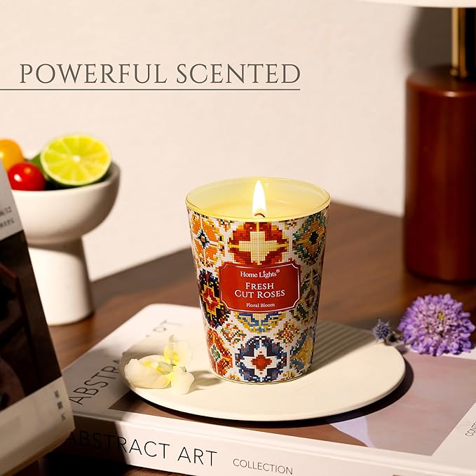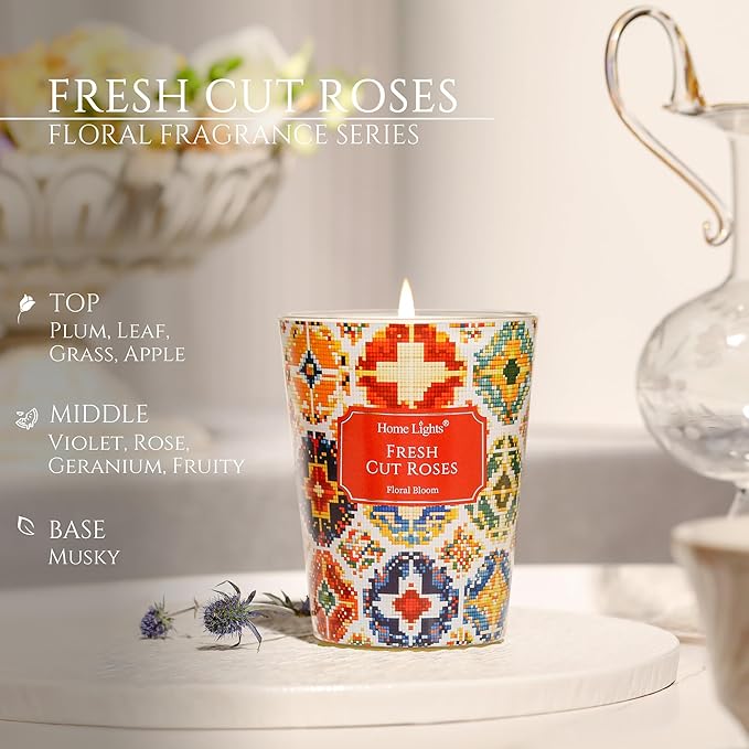 - 【Captivating Fresh Cut Roses Fragrance】Scented candle features a floral blend with fresh, dewy top notes, a heart of lush rose petals, and a soft, musky base. Perfect for creating a romantic and serene atmosphere.