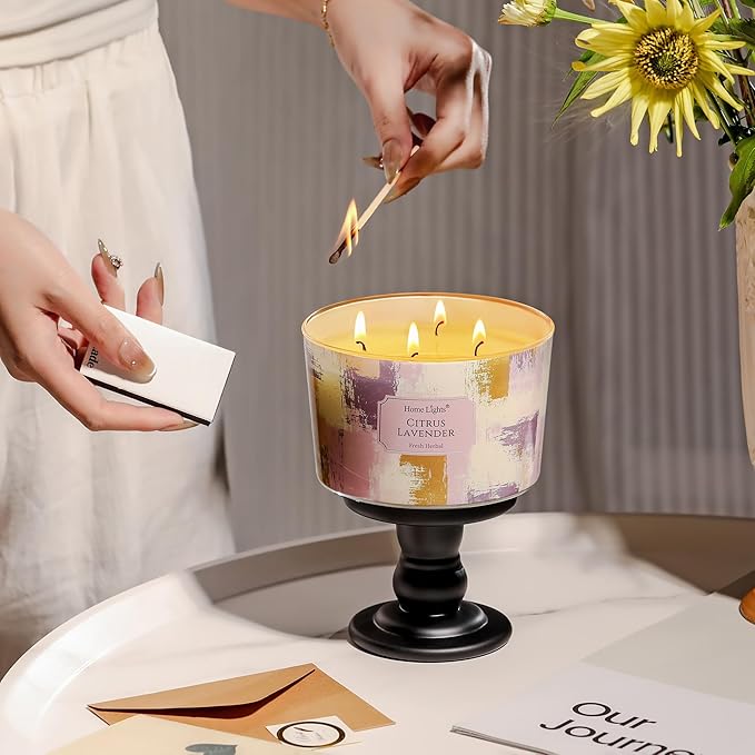 HomeLights Citrus Lavender Scented Candles | 18oz Soy Candles Scandinavian Minimalist Design 4-Wick Large Candle Jars | Ideal Candle Gifts for Events, Home Decor Stress, Relief & Relaxation