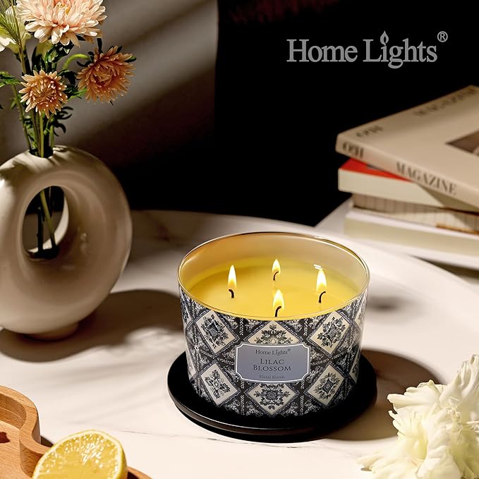 HomeLights 4-Wick Candles for Home Scented - 18oz Soy Wax Blend Candle Long-Lasting Fragrance, Bohemian Natural Textures Home Decor and Housewarming Gifts, Lilac Blossom