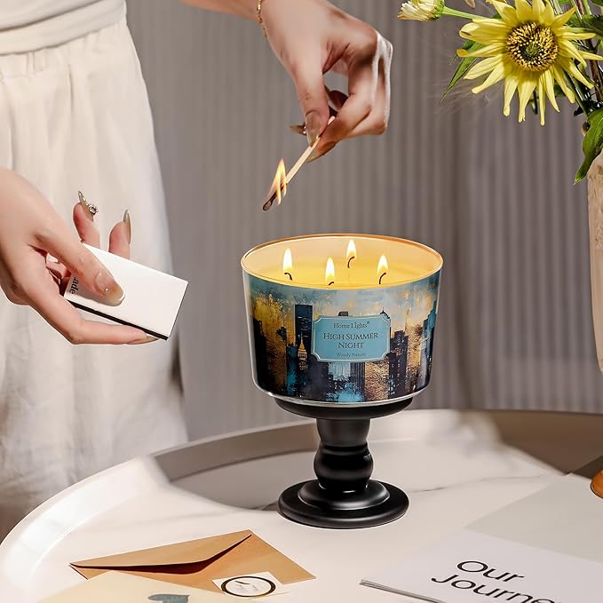 HomeLights High Summer Night Scented Candles | 18oz Soy Candles Industrial Chic 4-Wick Large Candle Jars | Ideal Candle Gifts for Events, Home Decor Stress, Relief & Relaxation