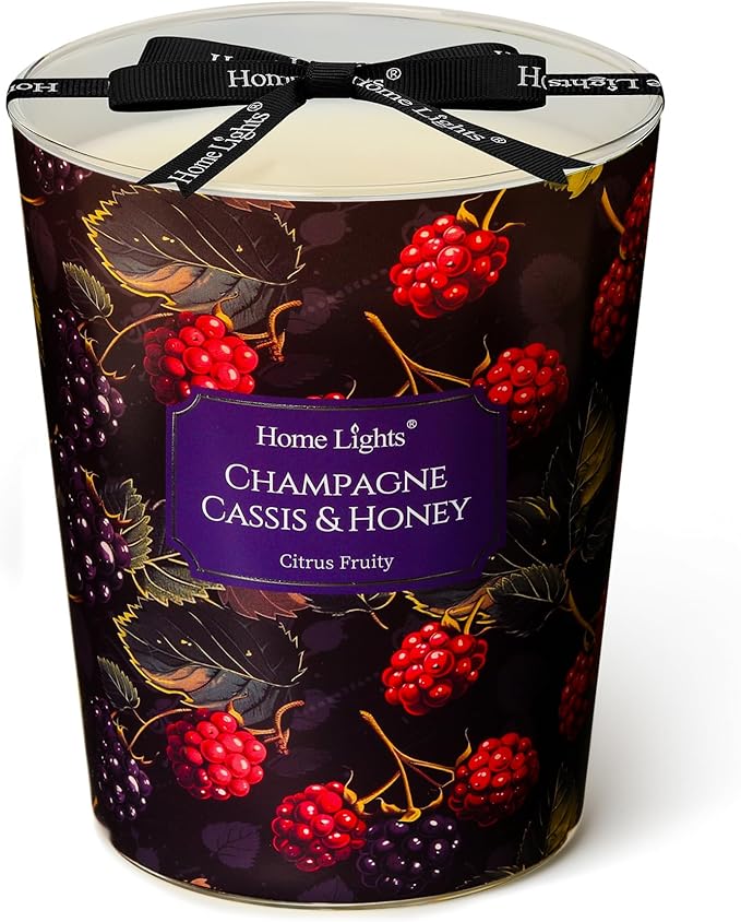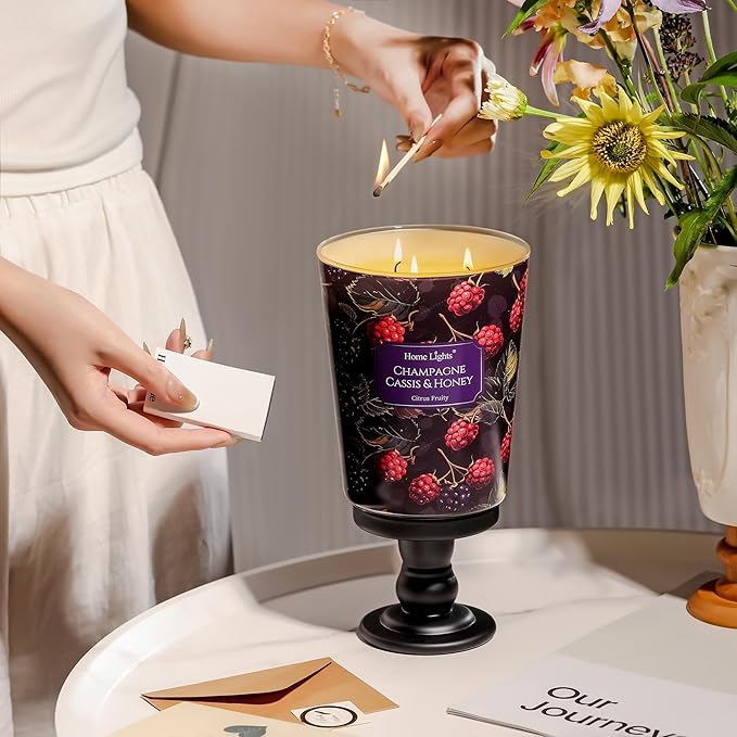 - 【Champagne Cassis & Honey Fragrance for Indulgence】Scented candle blends effervescent champagne top notes, juicy blackcurrant heart, and a warm, honeyed base with a whisper of vanilla. Ideal for creating an opulent ambiance in dining rooms, master suites, or as a decadent bath-time retreat.