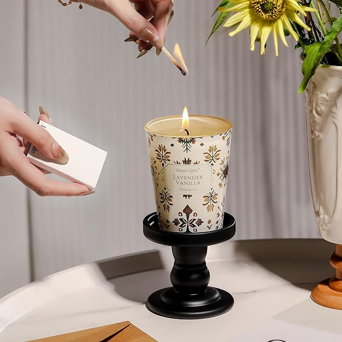 - 【Lavender Vanilla Fragrance for Relaxation】Scented Candles capture the essence of Lavender Vanilla with its soothing, floral top notes, a heart of creamy vanilla, and a soft, comforting base of warm musk. Perfect for cultivating a serene ambiance in living rooms, bedrooms, or bathrooms.
