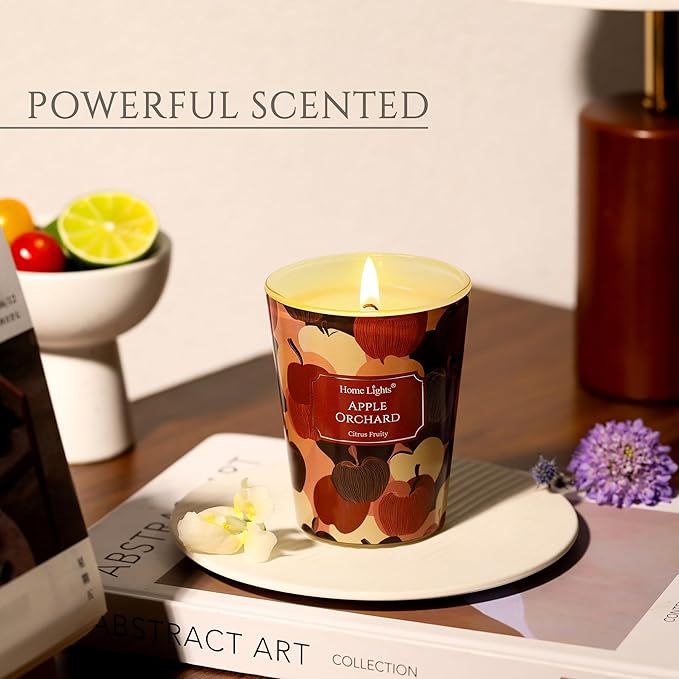 HomeLights Soy Wax Candles for Home Scented, 1-Wick Candles in Apple Orchard Scented, Aromatherapy Candles Gift for Parties, Relaxing, Eclectic Mixed Styles, 6.7oz