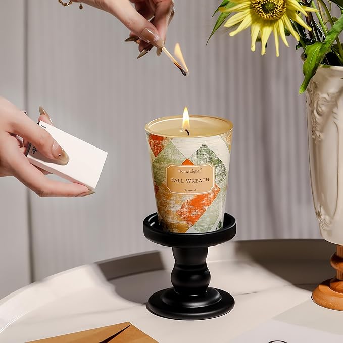 - 【Fall Wreath Fragrance for Relaxation】Scented candles capture the essence of Fall Wreath with its crisp, earthy top notes, a heart of warm spices, and a base of aromatic pine and autumn leaves. Perfect for cozy spaces like living rooms, bedrooms, or bathrooms to unwind and relax.