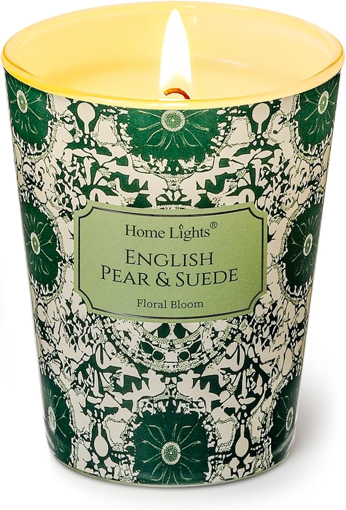 HomeLights Soy Wax Candles for Home Scented, 1-Wick Candles in English Pear & Suede Scented, Aromatherapy Candles Gift for Parties, Relaxing, Bohemian Natural Textures, 6.7oz