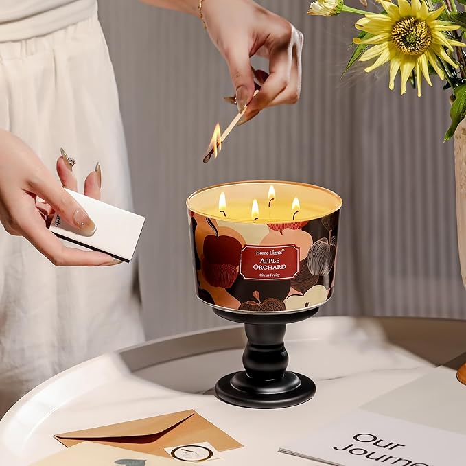 HomeLights Soy Wax Candles for Home Scented, 4-Wick Candles in Apple Orchard Scented, Aromatherapy Candles Gift for Parties, Relaxing, Eclectic Mixed Styles, 18oz