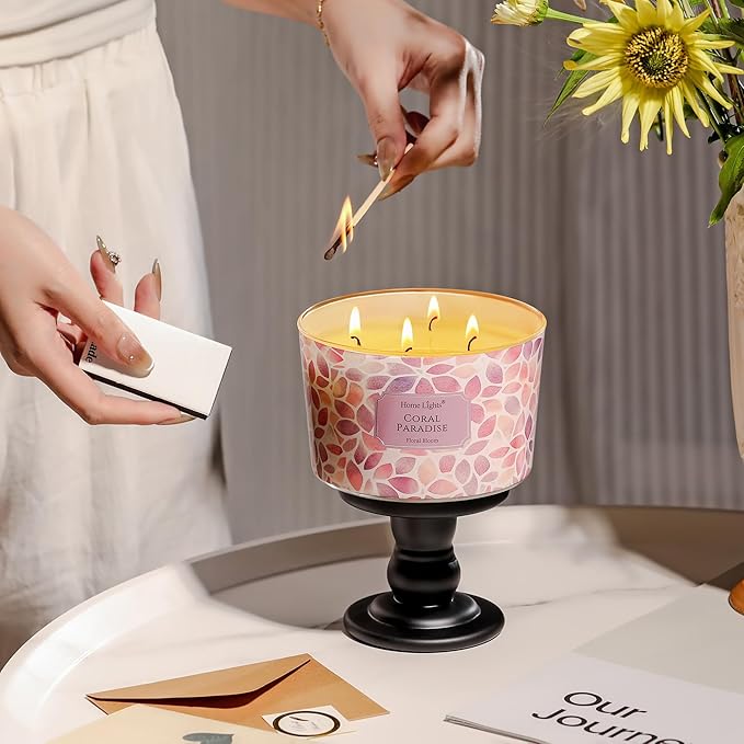 HomeLights Coral Paradise Scented Candles | 18oz Soy Candles Bohemian Natural Textures 4-Wick Large Candle Jars | Ideal Candle Gifts for Events, Home Decor Stress, Relief & Relaxation