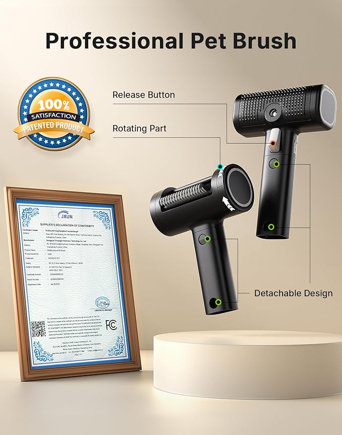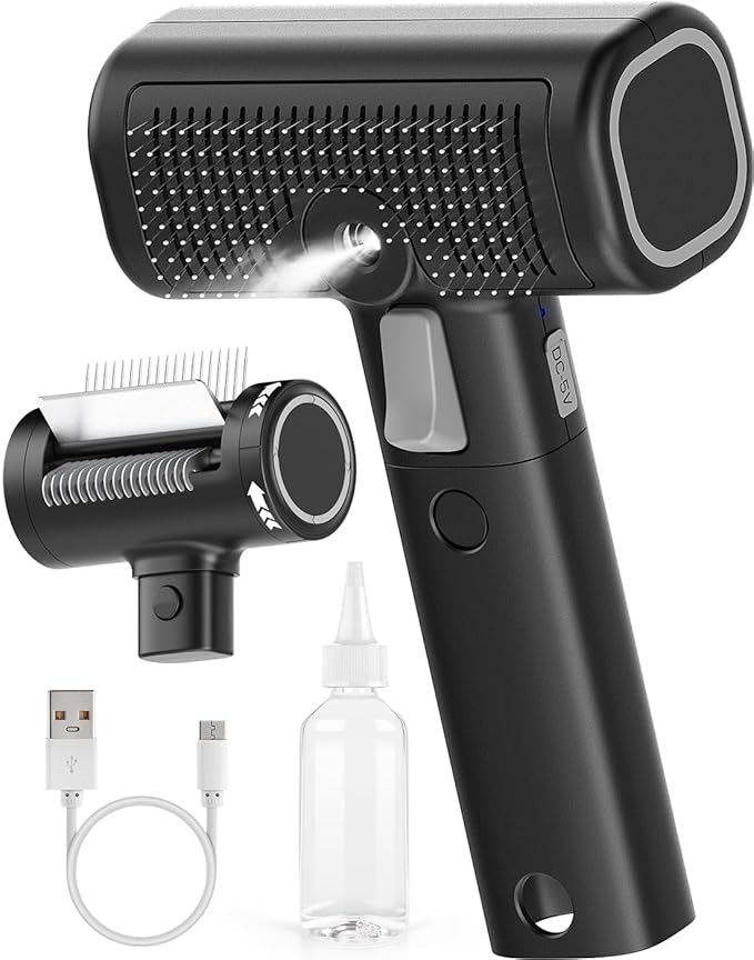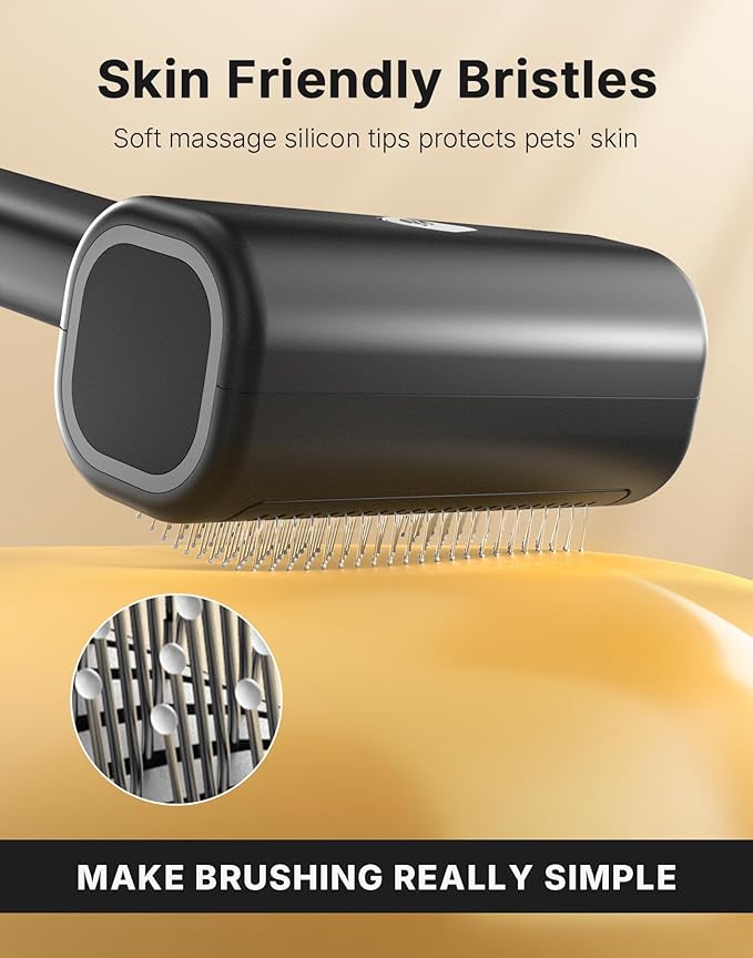 - [Pet-friendly Steam Brush] The steam brush part uses thicker bristles with soft plastic tips, creating a comfortable feeling while deshedding without hurting your pet. What's more, the spray of the brush comes out with extremely low noise (about 46 dB), which means your pets will not be afraid of the brush. The thicker and intensive bristles could also effectively capture enough floating hair. And the spay function could last about 1 hour after charging. Happy and effective grooming for pets