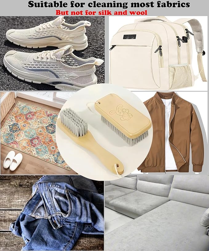 - The handle of the cleaning brush set is made of solid wood, which is not easy to break. The bristles are made of environmentally friendly PET and can be used for a long time. The bristles have moderate hardness, and the dense bristles are easy to bubble, which can deeply clean stubborn stains without damaging the fabric. The high-quality and durable laundry brush makes your cleaning work easier- Not suitable for use on delicate fabrics such as knitted, cotton, and linen.