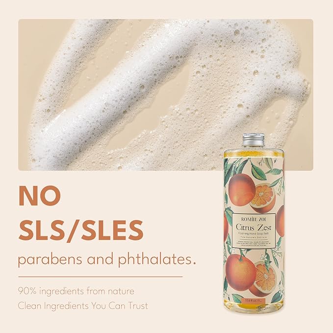 - 【Refreshing Scents Collection】Energize your day with the sparkling, citrus-forward aroma of Citrus Zest. Infused with natural citrus extracts, this foaming hand soap produces a soft, rich lather that cleanses gently without drying—perfect for refreshing your routine in a skin-safe, eco-conscious way.