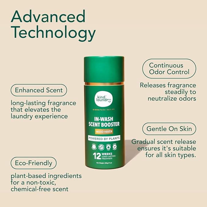Kind Laundry In Wash Scent Booster Beads - Wood Haven - 100% Plant Based - Natural Laundry Booster Beads & Smell Deodorizer - Environment Friendly Odor Eliminator for Clothes (320 grams)