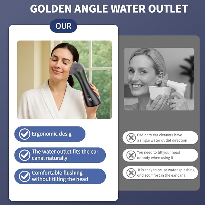 - Convenient Wastewater Disposal: Our ear cleaner features an innovative top-positioned wastewater tank design. Simply tilt the device sideways to drain dirty water after use—no need to disassemble the tank like traditional bottom-reservoir models. Enjoy quicker, mess-free cleaning!