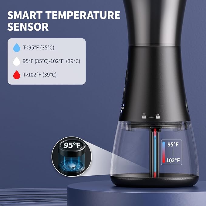 - Smart Temperature Indicator: The LED light guides you for safe water use: White: Recommended temperature range: 95°F–103°F. Blue: Water is too cold. Red: Water is too hot—wait to cool before use.