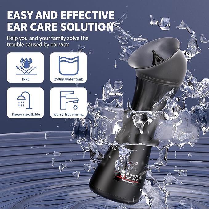 Upgraded Ear Wax Removal Kit, 4-Mode Electric Ear Cleaner - IPX7 Waterproof, Earwax Cleaning Kit with Water Temperature Sensor, 2in1 Waste Tank Design for Home Use