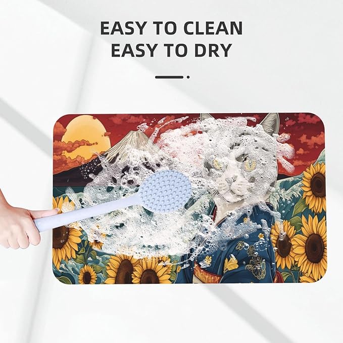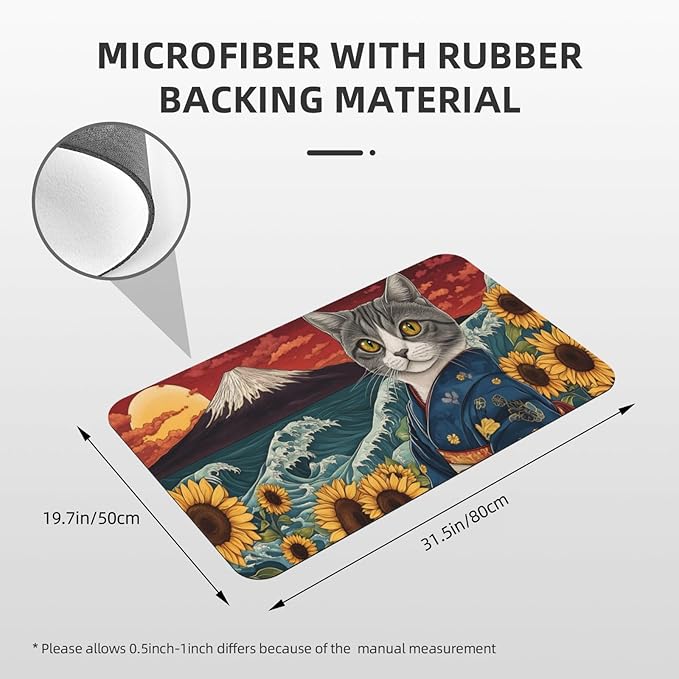 Japanese Waves Cat Bath mats Quick Dry Absorbent Bath Rugs Rubber Non Slip Bath Mat for Bathroom Floor Tub Shower Sink 20"×31.5"