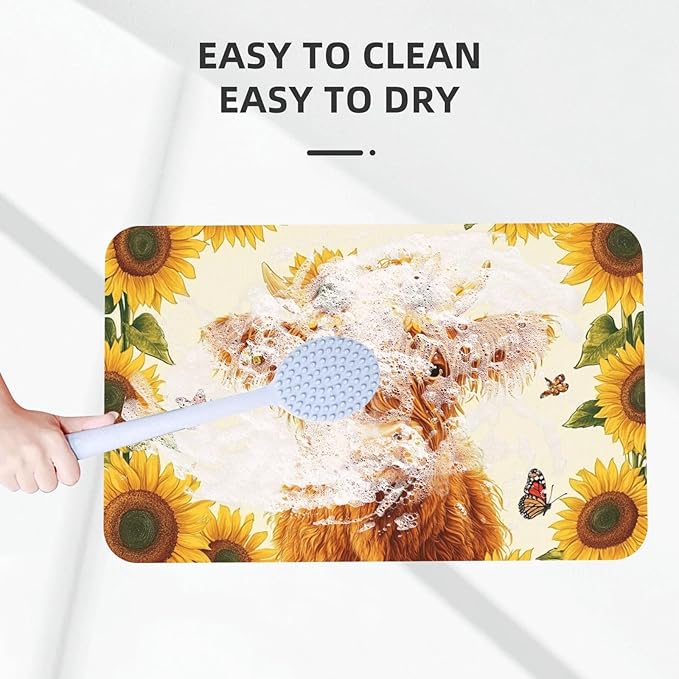 Highland Cow Bath mats Quick Dry Absorbent Bath Rugs Rubber Non Slip Bath Mat for Bathroom Floor Tub Shower Sink 16"×24"