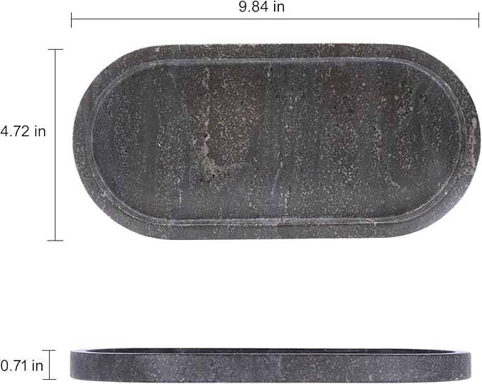 - Vanity tray 12 x 5 inches is suitable for various scenarios.It is the perfect size to place on a bathroom vanity to store hand soap, toiletries and hand towels. Because it is natural marble, the texture of each stone is different and the pattern on the tray you buy will be different from the picture