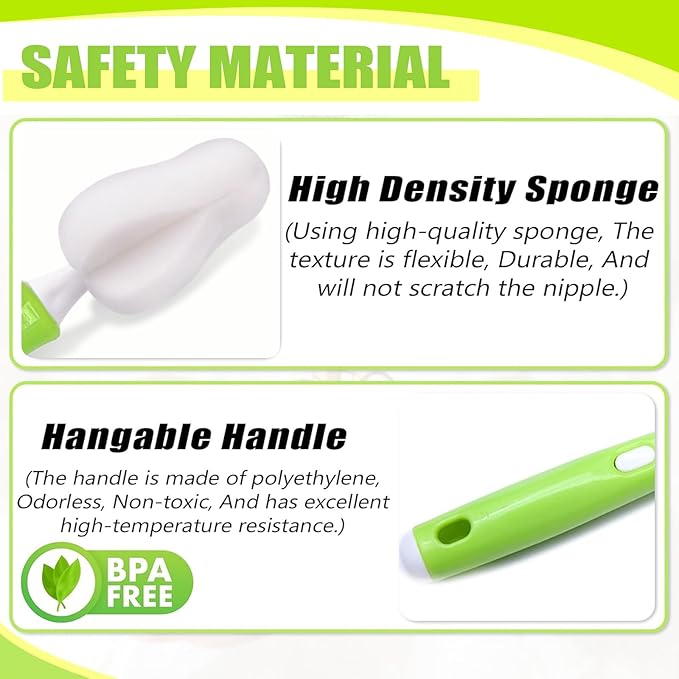- 【Replaceable Brush Head】- The detachable structure of the cleaning brush enables "one handle, multiple uses". When the sponge wears out, only the brush head needs to be replaced. Compared with traditional integral nipple brushes, it saves more consumables, is more environmentally friendly, and saves money. The buckle device ensures a secure installation, and there is no need to worry about the sponge falling off during cleaning.