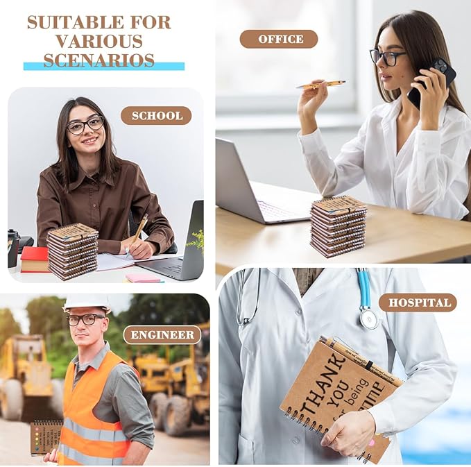 - Employee Appreciation Gifts Bulk:The package include 30 spiral notebooks,30 bamboo ballpoint pens and sticky notes,i think it has enough quantity for daily or office use,it also can be great gift for nurse teacher employees coworker,and ability to make impression for the recipient