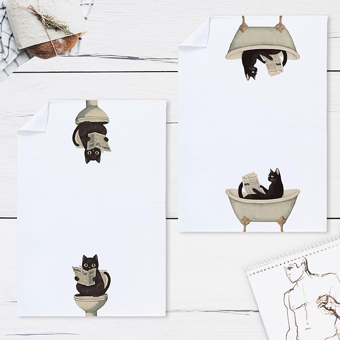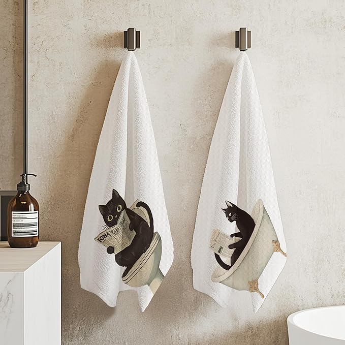 Cabana Bro Funny Black Cat Bathroom Hand Towels, Black Cat Gifts, Funny Kitty Read Newspaper Decorative Hand Towels for Kids Bath Room Washroom Spa Dorm, 16x24 Inch Set of 2