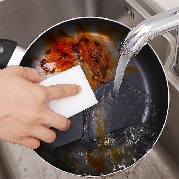- MULTIFUNCTIONAL CLEANER: Our unique sponge can easily remove grease, dirt and dust from kitchen utensils, such as blenders, coffee machines, toasters, storage containers, clean glass, leather products, shoes, car interiors, office supplies , Floors, tiles, etc.Please note:Don't scrub hard.Do not rub the skin, so as not to damage the skin.Do not use it on shiny polished surfaces such as cars, PC screens, etc